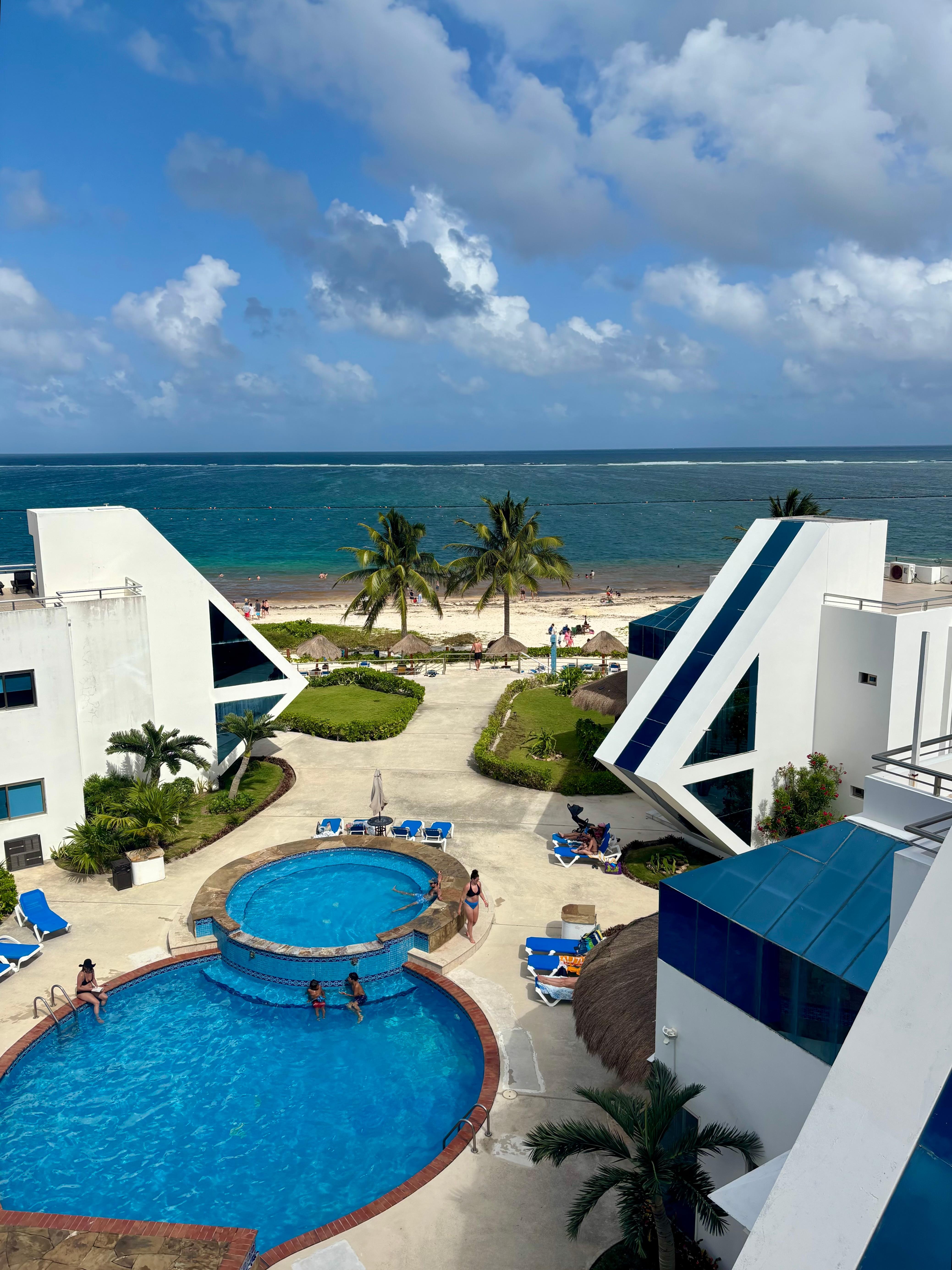 Ocean Homes is a very unique peaceful property located directly on the ocean with a lovely two level pool and beautiful lounging area that surrounds the area. The complex is very private with a gorgeous white sandy beach and palapas for your relaxation. The town of Puerto Morales is very quaint and features authentic Mexican cuisine and lovely shopping opportunities and safe walking distance from the condo. The complex provides free safe secure locked parking.