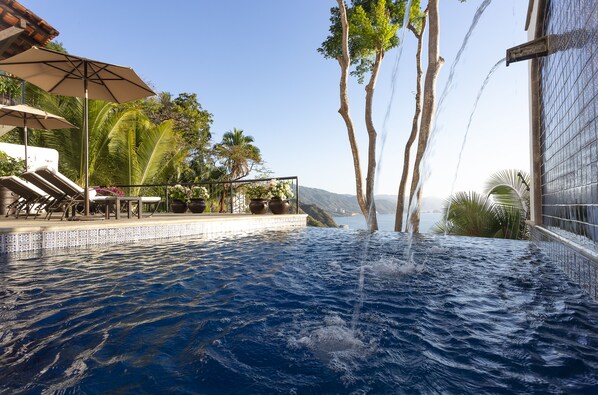 Dentro de la hermosa arquitectura de estilo colonial se encuentra todas las comodidades modernas imaginables. La casa incluye cuatro dormitorios, cuatro baños completos y dos medios, patio interior, varias terrazas, piscina infinita y elegantes espacios públicos y privados. amplias vistas de la Bahía de Banderas se exhiben desde todos los niveles.