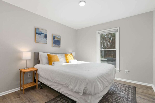 Welcome to Southwest Raleigh! Tucked away on a corner lot in a quiet neighborhood, our 5 bedroom, 3 bathroom home can comfortably sleep 16 guests. Conveniently located close enough to enjoy everything Raleigh has to offer, but far enough to provide a relaxing stay! Less than 20 minutes to Museum of Natural Science, Museum of Art, PNC Arena, Raleigh-Durham International Airport, and more! Plenty of parking, on-site laundry, free WiFi, and dog friendly with a fee. We would love to host you!