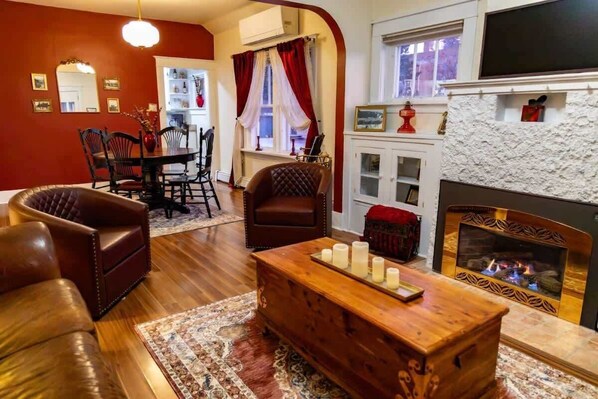 The dining room is a comfortable and cozy. A perfect place to gather and smile over meals or drinks. Put on an LP and let the songs of times past croon and swoon.