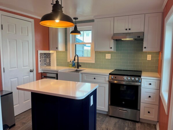 Adorable seaside cottage! Screened front porch greets you with double rockers for quiet evenings or morning coffee. Enter the front door (with digital keypad!) to the bar room, featuring comfortable seating for 4 and bar for all your happy hour desires! The barnwood-lined living room is a cozy space for movies or rainy day games, complete with pull-out full sofa, and additional seating. The main bedroom features custom chair-rail design with beadboard walls and beachy feel. Laundry and large closet space included! Just down the hallway, the tastefully updated, cheery eat-in kitchen space with island-bar seating for 2 is complete with quartz counters, stainless steel appliances, microwave, diswasher, drip coffee machine, toaster oven, crockpot, oven with pots and pans, and fully furnished with dishes, glasses, silverware, and grilling utensils. The adjacent bath has been recently stylishly updated. The back door takes you to the outdoor oasis, complete with paver patio, astroturf yard, privacy fencing, outdoor shower, grill, and dining set for al fresco dining! This cute-as-a-button abode has all you need to enjoy a wonderful time exploring all Rehoboth Beach has to offer, including 2 bikes, beach towels, beach towels, and 2 backpack beach chairs! Book your stay now and enjoy!!