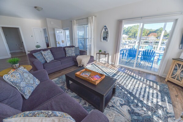 ¡Disfruta de las increíbles vistas del puerto deportivo desde esta casa! Situado en el paseo marítimo de Pot-Nets Bayside, este espectacular hotel cuenta con 3 dormitorios, 3 baños, un porche exterior con vistas a la marina y amplias zonas de estar que combinan la cocina, el comedor y la sala de estar. Dé un paseo de 5 minutos por el paseo marítimo de la marina para llegar al siempre popular Paradise Grill. Piscinas, playa, tenis y áreas de juego están en el sitio. Boat Slips están disponibles para alquilar a $ 40 por día. Un coche de golf está incluido en esta propiedad, sin costo adicional. Los niños son bienvenidos y también lo son las mascotas. Excelente ubicación para kayak y Stand Up Paddleboards. El campo de golf World Famous Baywood Greens (10 minutos), Tax Out Free Tanger Outlet Centers (20 minutos) y las pintorescas zonas céntricas de Rehoboth Beach y Lewes (30 minutos) se encuentran a poca distancia en coche.