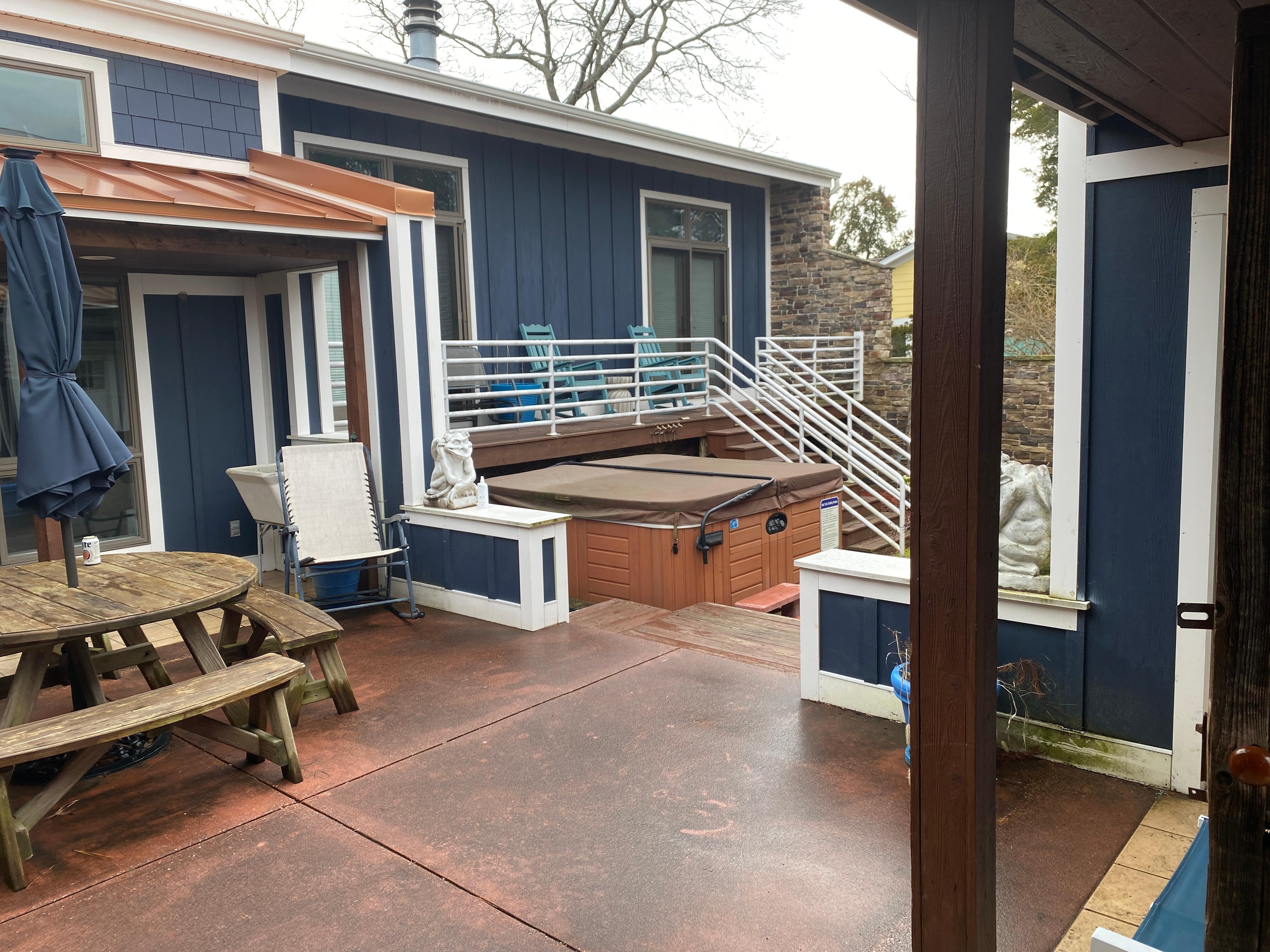 ULTIMATE REHOBOTH "BEACH HOUSE"! This is the year that you'll find your perfect place at the beach'! This 4 BR, 3 BA has a lovely private courtyard complete with a gorgeous deck with both lounging and dining areas, a gas grill and inviting hot tub . . . perfect for relaxing "nights in" after a sweet day at the beach. In the quiet residential neighborhood of Country Club Estates, the home is situated just 4 short blocks to the beach, boardwalk and all the wonderful shops and restaurants of downtown Rehoboth. The beautifully sunlit interior of the home has room for the whole family, with a spacious sunken living room, a well-equipped kitchen, a huge dining room for family dinners, a private office if you need to get some work done while on vacation, and even a game room for the kids to hang out... with a sweet shuffleboard table! Have a rainy day? Everyone will love the 6 smart TV's to binge watch all of your favorite shows! No Pets and No Smoking Please. Sleeps 10.