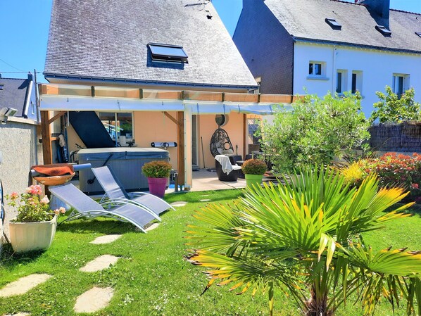 fachada norte de 28 m² de terraza con 6 personas SPA + zona ajardinada.
