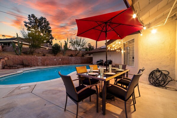 This is a comfortable home with 4 bedrooms, open floor plan living space with living room and dinning area, full kitchen, washer and dryer, outdoor charcoal BBQ and living spaces, swimming pool and loungers. This home runs on 500 Mbps wifi internet for productivity and streaming entertainment. There is a 65" Roku TV in the living room and a 55" Roku TV for the master bedroom.