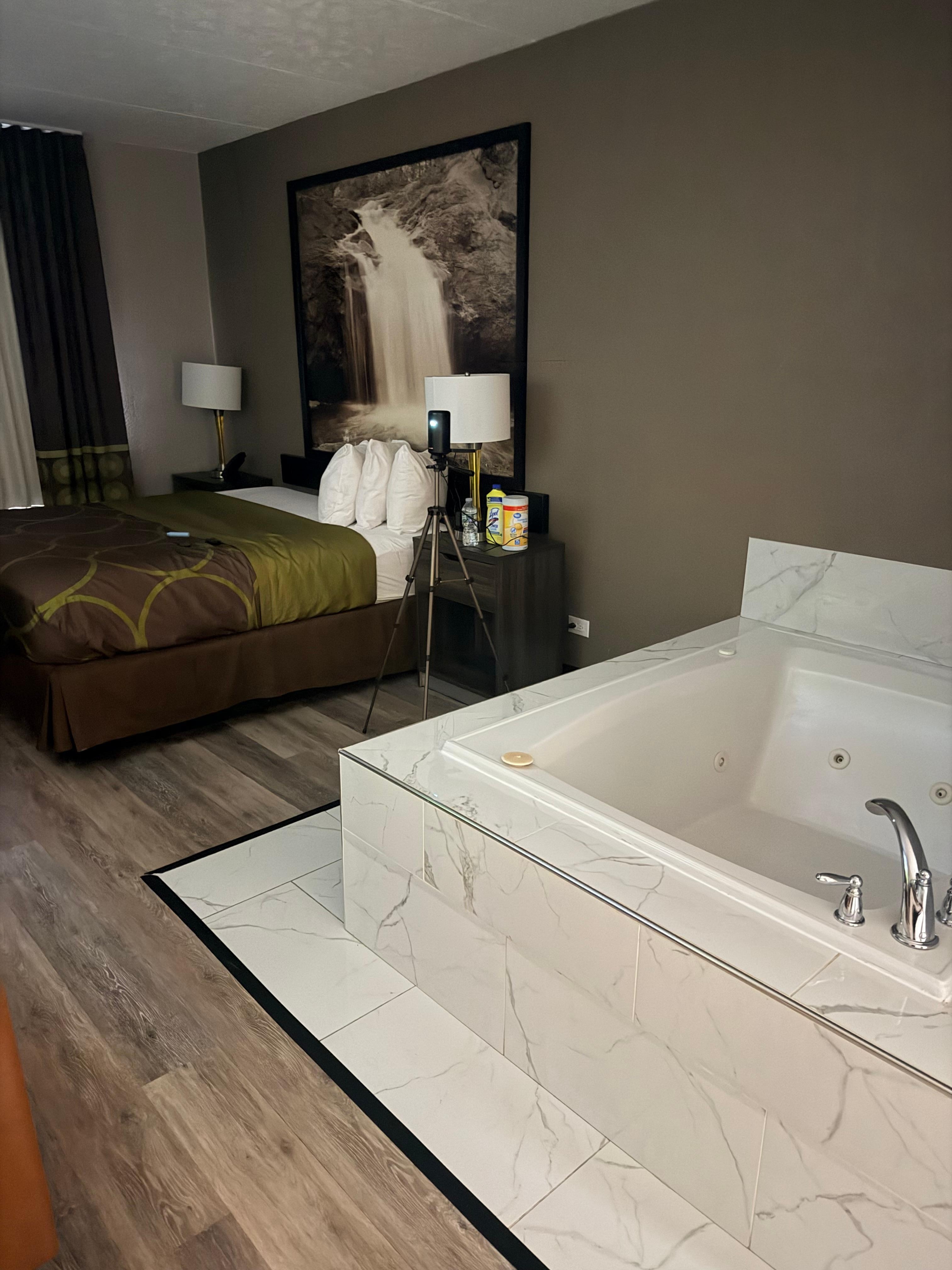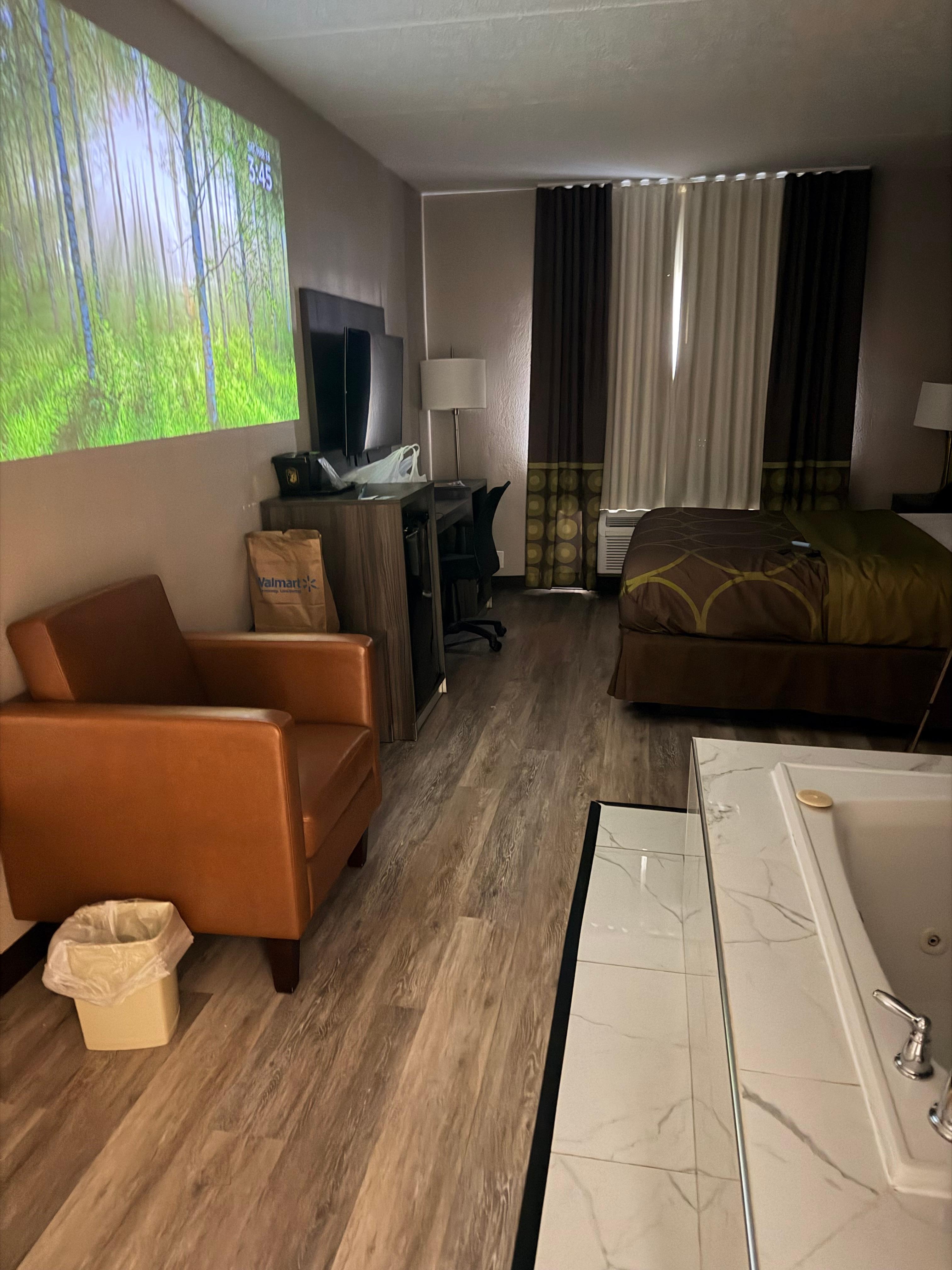 the jacuzzi in the room was great. The room was in good condition, not the cleanest but not terrible. The entire floor we were on smelled like cigarettes and allegedly there was supposed to be free continental breakfast but that was nowhere in sight.