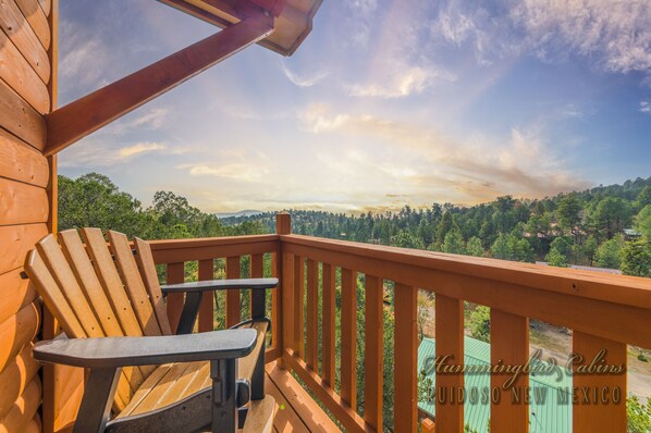 Outside, the expansive deck offers one-of-a-kind views of Ruidoso's beauty, with a TV on the balcony for an extra touch of comfort and entertainment. Whether you're enjoying a peaceful morning coffee or watching the sunset over the mountains, the views at Crest View are truly unforgettable. With a DVD player on hand for family movie nights, Crest View provides every comfort you need to feel right at home.
