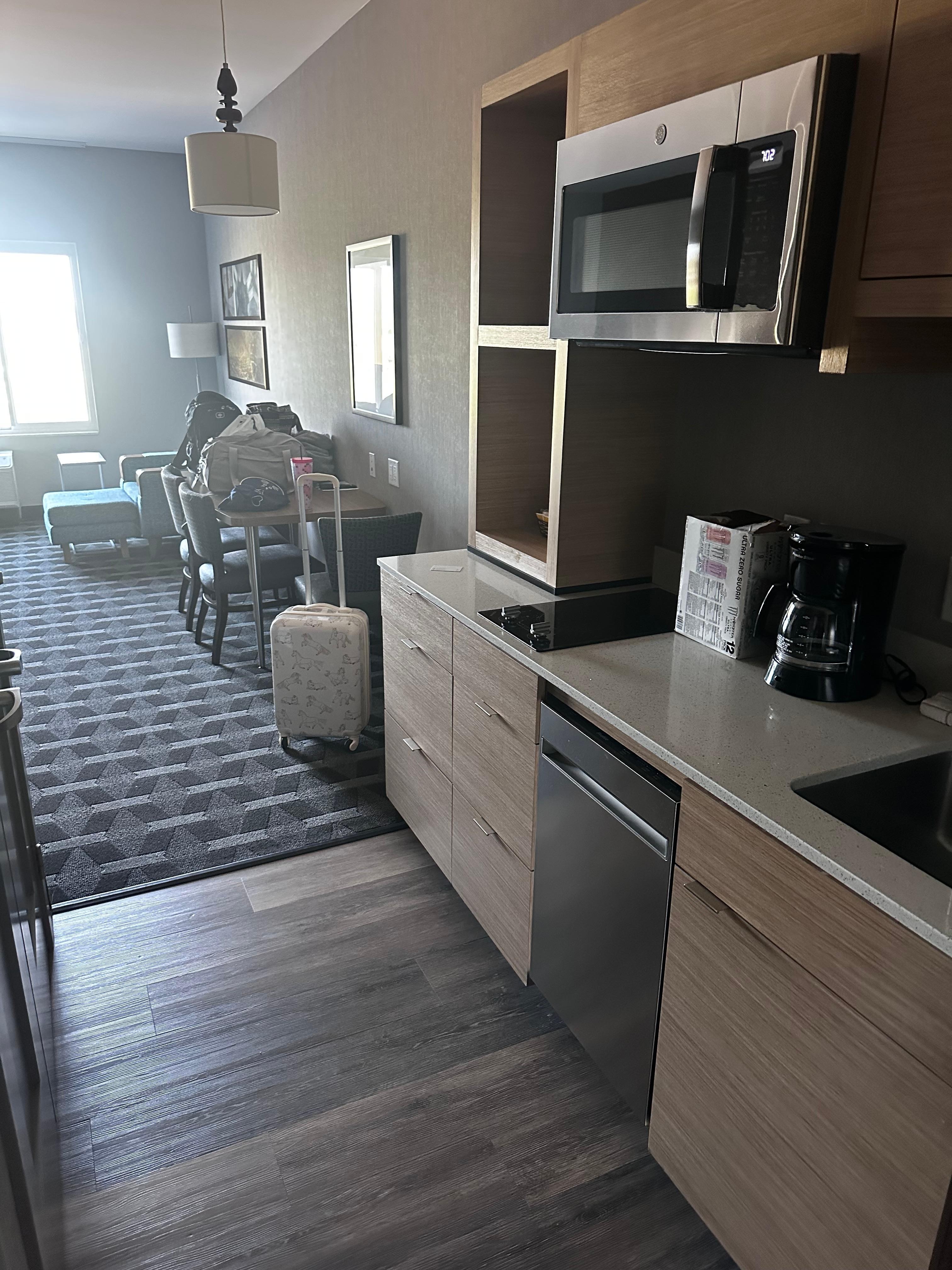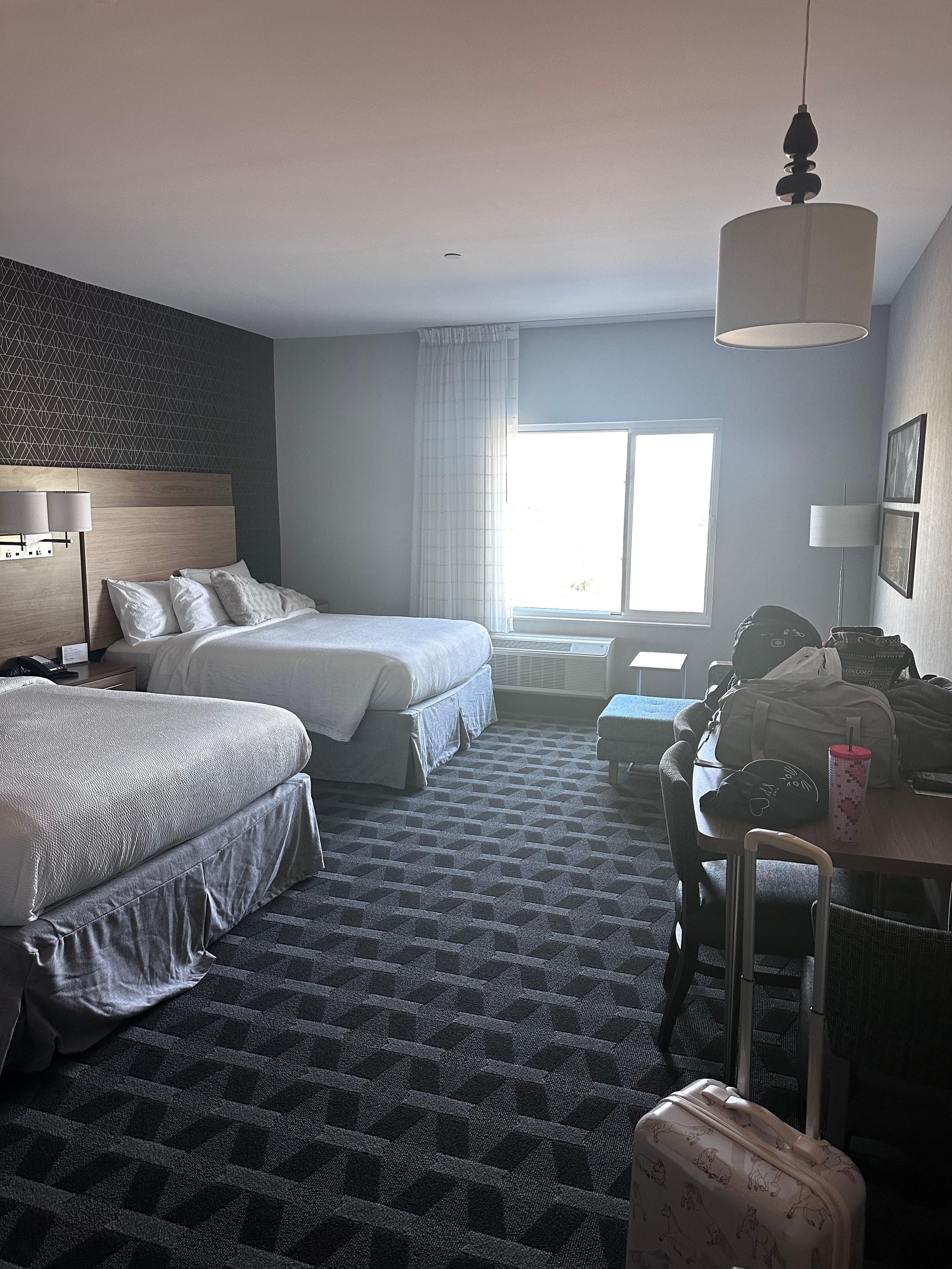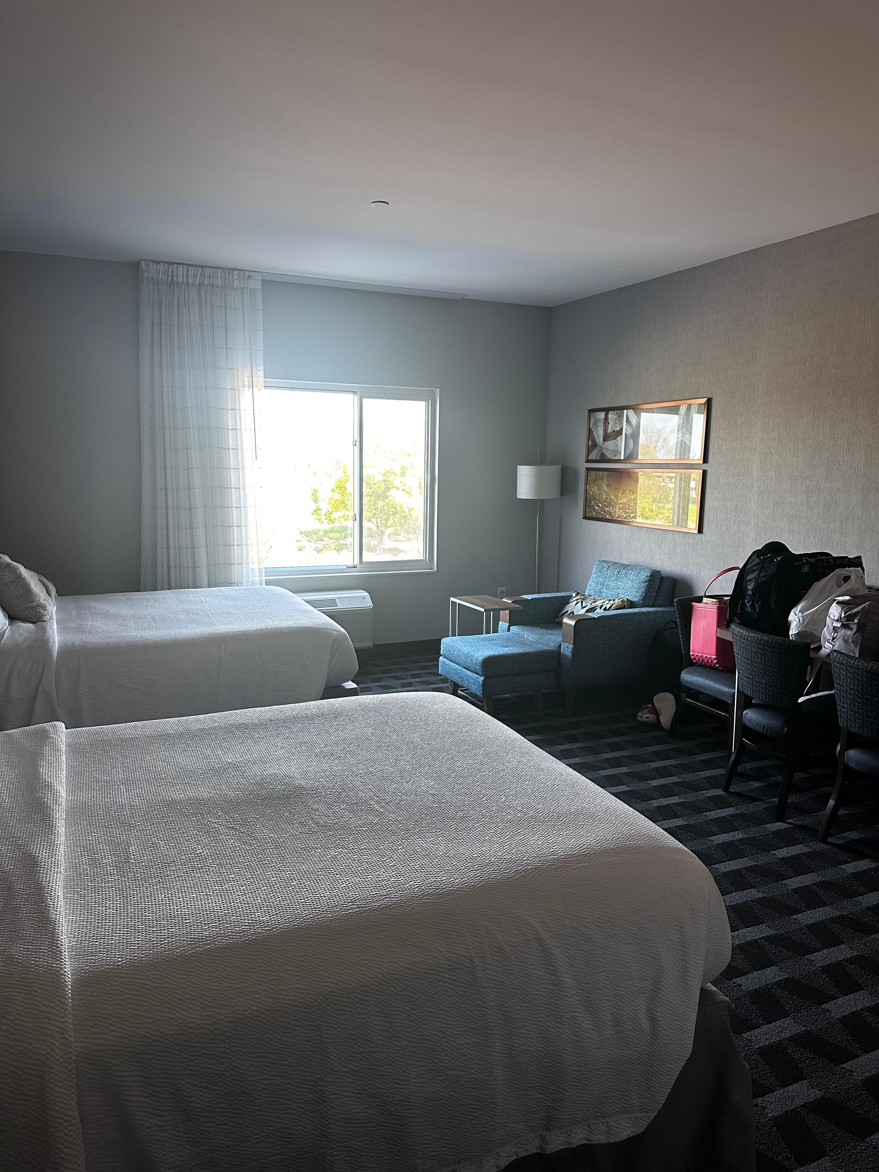 We loved staying here! The staff was exceptionally friendly and helpful from check in to check out. The room was clean and spacious. We enjoyed having a kitchenette. The beds were comfy, too. We enjoyed all of the amenities each day of our stay. The pool was nice after a workout. A warm breakfast was a great way to start the day. We’d stay again for sure!