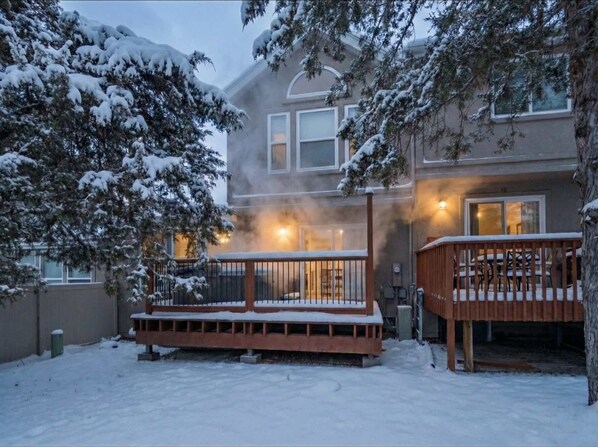 For a truly relaxing experience, soak your aching muscles in the deluxe outdoor hot tub that is sure to melt your stress away.