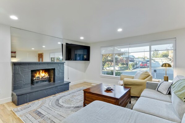 Una Smart TV, una chimenea, videojuegos, un reproductor de DVD
