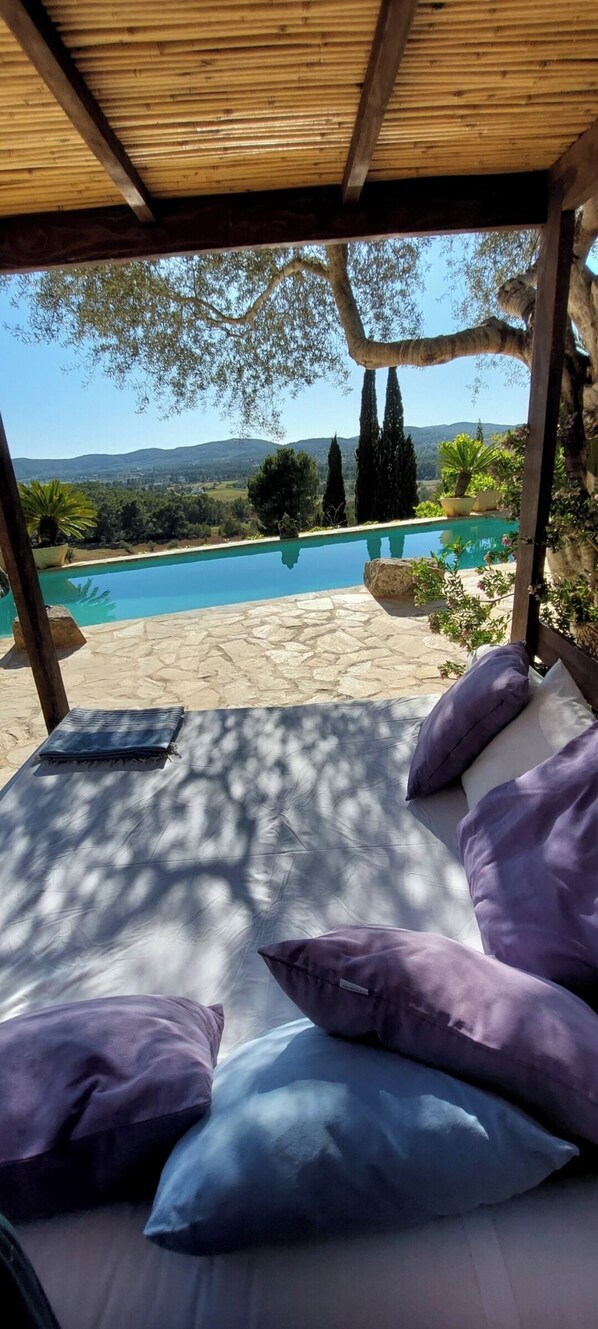 Los mejores puntos sobre esta propiedad son: espectacular piscina frente a la puesta de sol. En el centro-norte de Ibiza, una de las últimas áreas naturales de la isla, en una posición elevada, con terrazas en desnivel mirando hacia la puesta de sol, con el valle de Sant Miquel a sus pies. Una nueva casa construida enteramente de piedra, con techos de madera de sabina y olivo, con pequeñas puertas y muebles antiguos de Ibiza y Asia. Gran terraza con chill-out, donde sólo se escuchan los pájaros. Una casa de estilo tradicional con las comodidades del siglo XXI. A tan sólo 4. 5 km. de la playa de Benirras, una de las últimas playas naturales de Ibiza con muy poca construcción a su alrededor. A sólo 7 km. el famoso mercadillo hippy de 'Las Dalias' con actividades diurnas y nocturnas. Y el norte es famosa por tener los mejores restaurantes tradicionales de la isla.