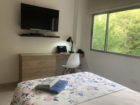Apartamento moderno, confortable, buenos acabados, amplias ventanas con espectacular vista, bien iluminado y una amplia terraza con excelente vista al mar, las montañas y la Bahía de Taganga, a solo 200 metros de la playa. Capacidad máxima 4 personas. Cuenta con dos habitaciones amobladas, ambas con aire acondicionado, ventilador de techo y servicio de T.V., Netflix y servicio de internet WiFi gratuito. Se pueden solicitar víveres y comidas a domicilio. Ofrecemos servicio de transporte pago desde el aeropuerto Simón Bolívar con previo aviso. Temporadas largas o cortas.