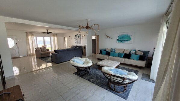 This home was a wonderful place to stay with our family. Everyone had plenty of space to relax. The pool was so great for our 18 month old granddaughter to play in the shallow end. She loved it! We were able to enjoy making a few meals at home as well as walk to local restaurants. The view of the ocean from the front patio was amazing and we were able to swim and snorkel right out front.