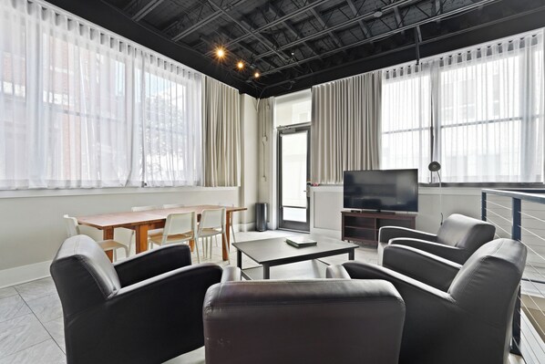 This property was perfect for a friends weekend getaway with the perfect location in the heart of Savannah. The location was very convenient with many restaurants and shopping within walking distance as well as the riverfront. The set up inside actually worked out great with the living space on the main level and the bedrooms downstairs. We did have some difficulties checking in with the codes being incorrect but Lucky Savannah was very helpful via phone and text to get us inside. When we arrived, half of the beds were made with sheets and pillowcases. We contacted Lucky Savannah, and again they were easy to communicate with and sent someone over quickly to get the rest of the linens put on the unmade beds. They have a lovely rooftop available as a common area for all units. We were hoping to see the riverfront fireworks on the 4th of July from the rooftop but the building next to the condos was right in the way and we missed the whole thing. Overall, our experience was very good and would love to stay at another Lucky Savannah property.