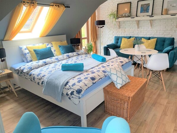 - Cargo por sábanas: 6 PLN por estancia (los huéspedes también pueden traer las suyas)