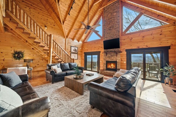 Experience the perfect blend of comfort, views, and entertainment at Peak View Retreat Cabin. This beautifully designed mountain getaway sleeps 8 and features 3 bedrooms with Roku TVs, private baths, & jacuzzi tubs. Take in breathtaking mountain scenery from the balcony, soak in the private hot tub, relax under the stars, or enjoy the game room with a pool table, arcade, and MORE. With two fireplaces and premium amenities, every moment feels special. Escape to the mountains and unwind. Book now!