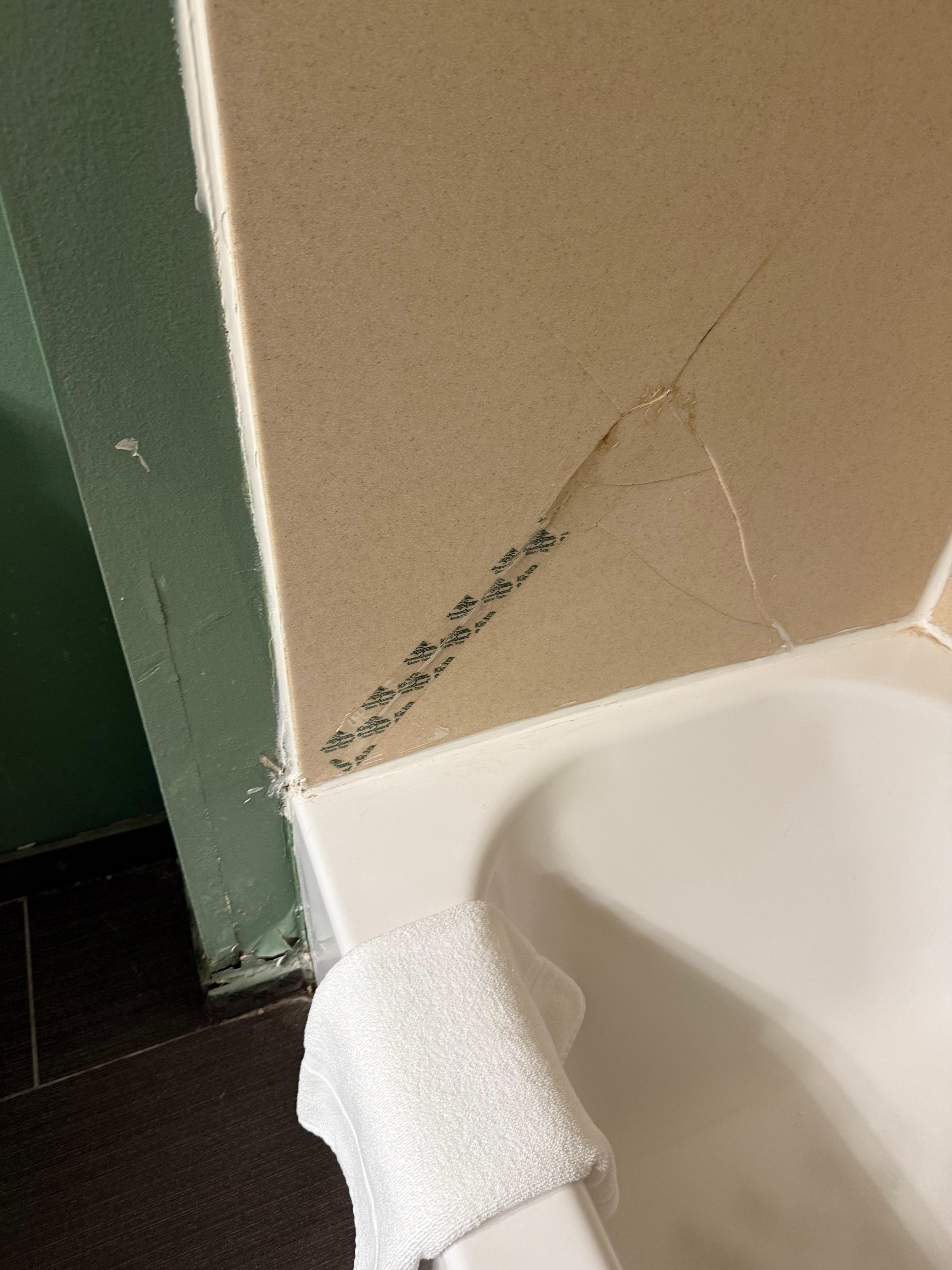 The bathroom tile was broken and shifting underfoot, which made the space feel unsafe and poorly maintained. We only stayed one night, and were looking forward to a shower after a day of travel, however one look at the tub and we decided we were cleaner than the shower itself. There were also visible stains on the walls throughout the room, with paint peeling, and areas of crudely painted wall giving the impression that the room hadn’t been properly cleaned or updated in quite some time. Several items in the room were broken and a lightbulb was out which again, didn’t indicate any standard level of maintenance.