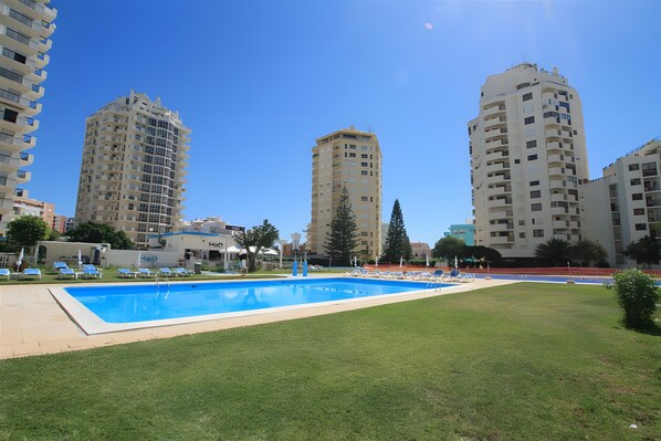 Relajaos en el balcón privado. El alojamiento incluye acceso al complejo de piscinas exteriores compartidas, con piscina infantil, perfecto para los días calurosos de verano. Para acceder a la piscina necesitáis una tarjeta, que se solicita en el check-in. También hay ducha exterior para mayor comodidad.