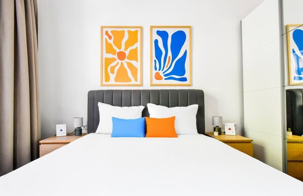 Designed with style and practicality in mind, the apartment features two bedrooms—one spacious with a queen-size bed, the other more compact but equally comfortable. Ideal for couples, professionals, or small groups, the layout offers privacy and ease of use.