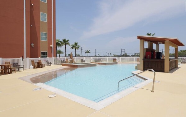 As a guest of the exclusive La Isla resort community you'll have access to a wealth of amenities. Lounge by one of two sparkling heated pools (seasonal), one optimized for family fun with the little ones. Relax in the hot tub, cookout on one of several grills under shade verandas, or workout in the gym. Take a stroll along the pristine beach less than a five minute walk away, take a short walk with the family to the water park at the Beach Park at Isla Blanca, or take a 4 min stroll to the marina just across Padre Blvd and charter a deep sea fishing boat, dolphin watching cruise, or party cruise to make your day. Enjoy expansive beach relaxing, access to beach amenities, pickup volleyball, and multiple food and adult beverage options on the nearby beach. The choices are endless, and all within walking distance! Park your car and walk 4 min to the SPI Visitors Center to catch a free shuttle all day and evening up and down the island.