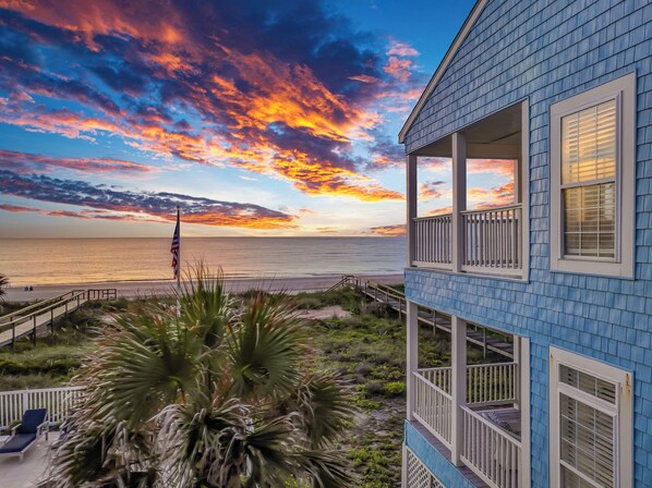 As you make your way through the home, your gaze will constantly be drawn to the backyard paradise that awaits you. The ocean is truly the focal point of “Here Comes The Sun”. Spend your days basking in the Florida sun, taking refreshing dips in the heated shared communal pool, or unwind by just laying out at the beach.