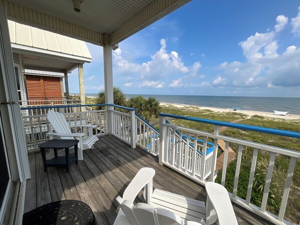 ¡Adelante al paseo marítimo! Dos amplias y lujosas habitaciones, un espacioso loft (los adultos pueden pararse en el loft), tres baños (uno con jacuzzi), directamente en la playa con paseo marítimo a través de las dunas, múltiples televisores de pantalla plana, VCR y DVD, conexión inalámbrica gratuita Acceso a Internet de alta velocidad, muchas sillas en las terrazas con vista a la playa. Ducha exterior caliente y fría.