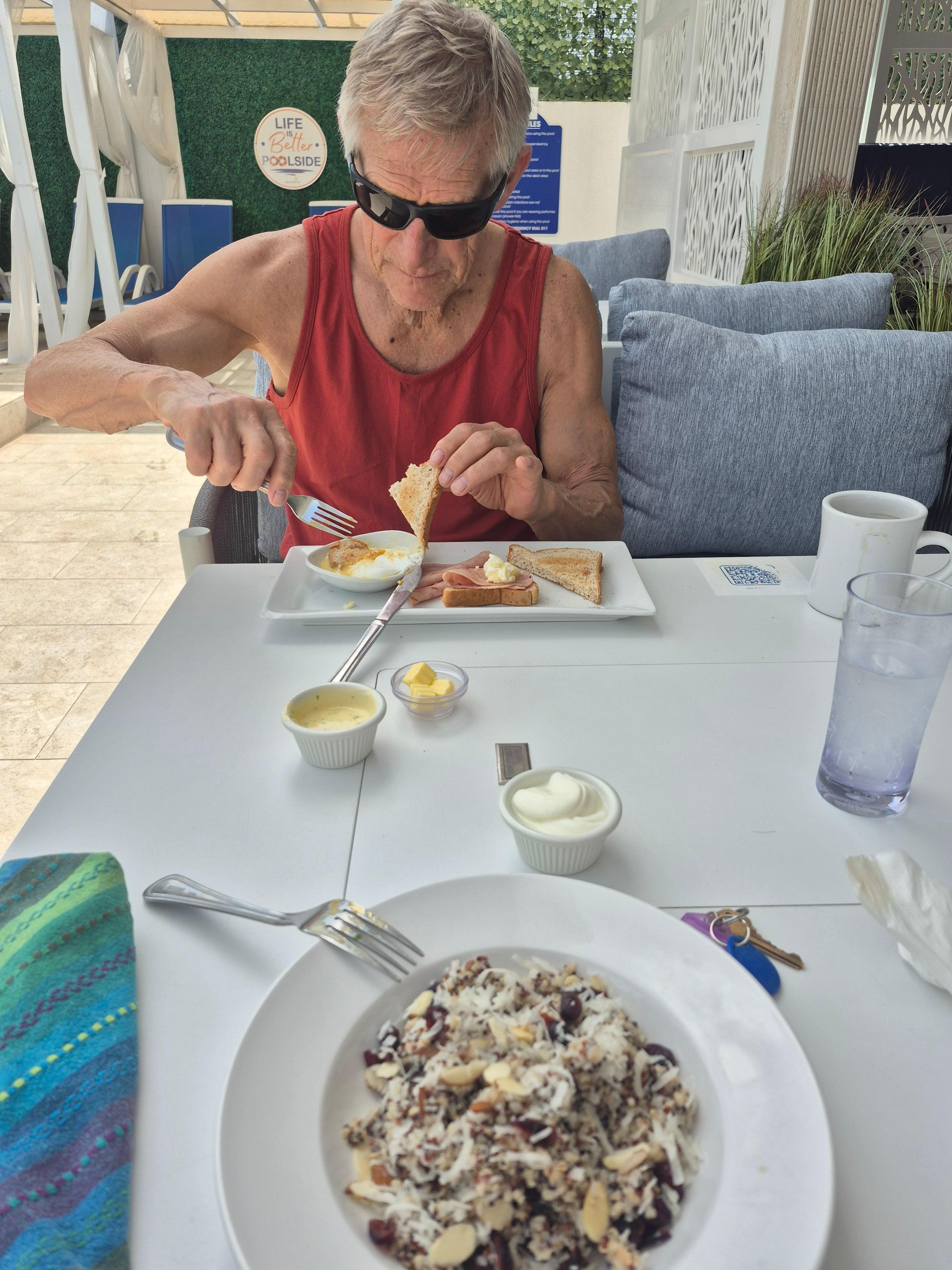 Lovely small hotel. Our room was large and clean, with a nice big balcony. There was a bit of industrial noise from an adjacent property, and a rogue rooster, but nothing earplugs couldn’t take care of. The standout attributes of the Melbourne are the very friendly and professional service and the pool-side bistro, which is beautifully furnished and decorated and the food is excellent. Even if we don’t stay there again, if we are in the area, we will return for the breakfast burrito!