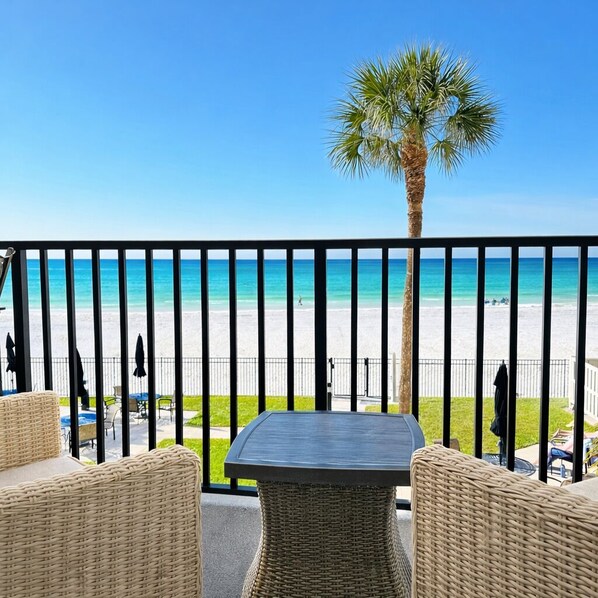• Private balcony with seating and two tables