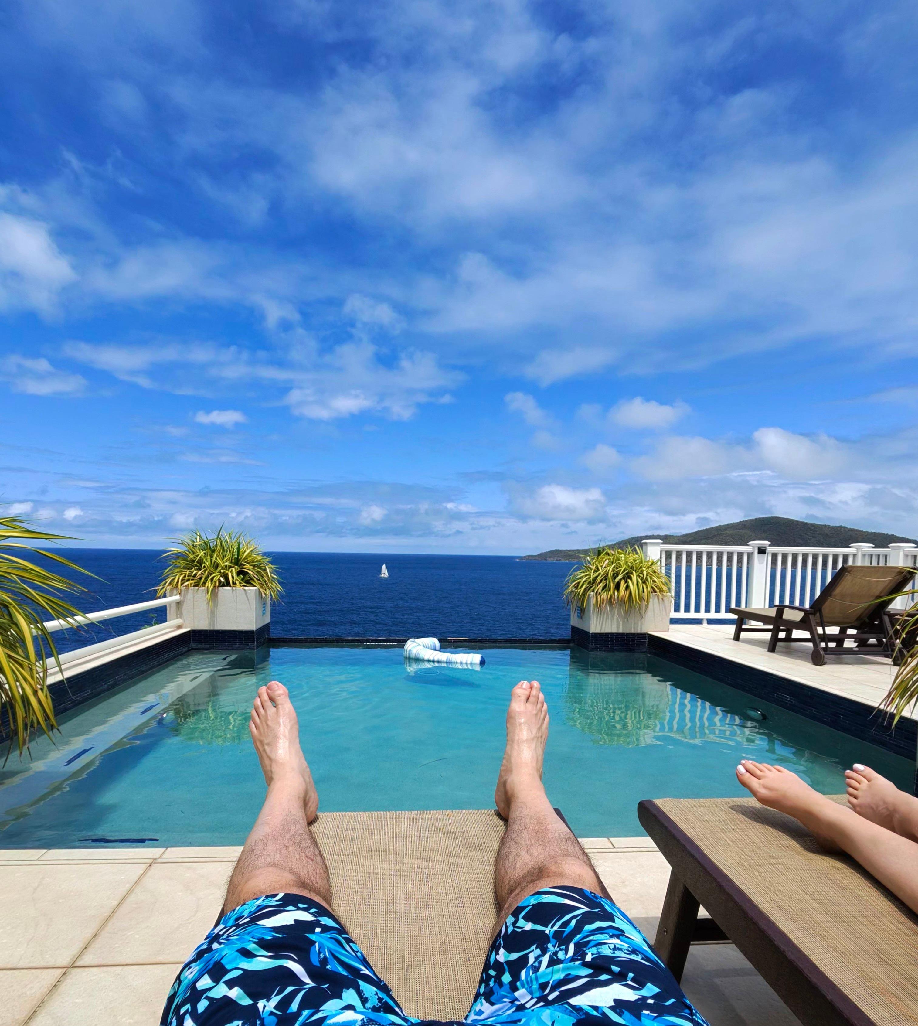 Completamente renovado en 2019, Ocean's Edge Villa - St. Thomas - es un paraíso caribeño ubicado en la comunidad cerrada de Sydney's Fancy. Construido en una península, los 370 pies de costa abarcan una espectacular vista al mar de 280 grados, que incluye más de diez islas y cayos que se extienden por el famoso Pasaje de Drake. Los constantes vientos alisios hacen que la villa esté prácticamente libre de mosquitos. Recientemente renovado en 2019, disfrute de cuatro habitaciones impecables, todas con baño privado. Sofá extraíble de tamaño completo en la oficina. Duerme hasta 10. Situado en la península exclusiva de Petersborg, usted y su familia se sentirán seguros en esta comunidad cerrada con un sistema de seguridad.