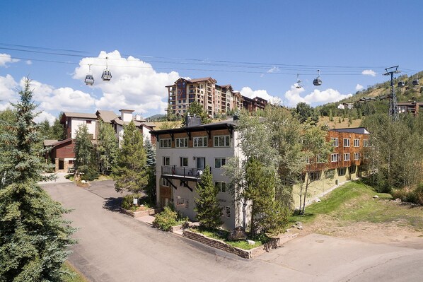 Durante el verano, lleve una bicicleta de montaña a la góndola o disfrute de un paseo por el paseo de Steamboat Ski Area y el refrescante arroyo de las Montañas Rocosas que fluye a través del área base, donde actividades y eventos de verano como conciertos gratuitos y exhibiciones de arte realzan Steamboat Springs. Espléndido entorno de verano.