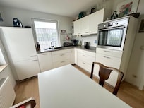 Gut ausgestattete Küche. Gute Sitz- und Schlafmöbel.