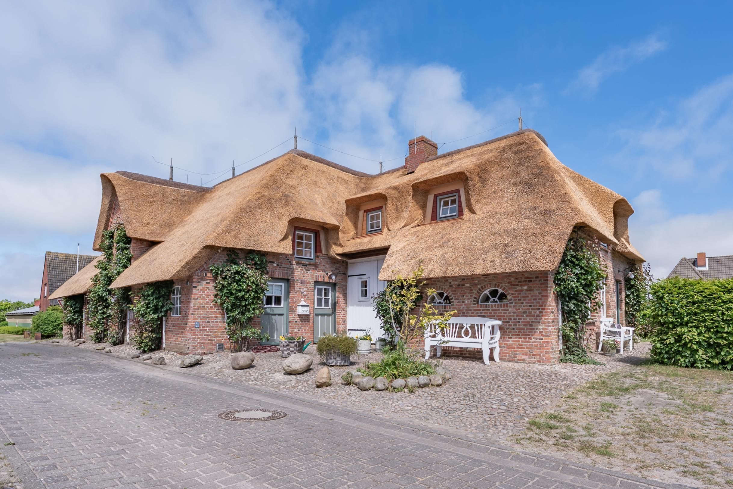 Welcome to the beautiful holiday village Oldsum!The former captain's house DIDO under thatch from 1631 was divided into three separate residential units in the course of renovation measures. Each of these houses has its own entrance and private garden area. This is equipped with a beach chair and garden furniture to enjoy the hours of sunshine outdoors. In 2018 the house was renovated with great attention to detail. Particular emphasis was placed on the combination of Frisian living elements, contemporary ambience and cosiness. The living room on the ground floor with the fireplace converted from antique tiles, the blue ceiling beams, and the integrated white country kitchen allow a comfortable vacation in historical surroundings. The bathroom with shower and underfloor heating is also there. The two cozy bedrooms with a reading corner in a window niche, as well as a further small bathroom are located on the upper floor. The accommodation is distributed on the ground floor and first floor. Room layout: 1 bedroom (2 single beds), 1 bedroom (1 king-size bed), 1 living room, 1 kitchenette, 1 bathroom with shower, 1 additional toilet. Features: Award: Pets allowed on request (with additional costs), child-friendly, non-smokers. Outside: parking space f. Bikes, garden, garden furniture, parking, beach chair on terrace, terrace. Comfort / cosiness: tiled stove. Kitchen / household: oven, ironing board and iron, filter coffee machine, freezer, dishwasher. Sanitary: floor-level shower, hairdryer, towel radiator, make-up mirror. Service: bed linen / towels. Entertainment / communication: Bluetooth speaker, Blu-Ray player, DVD player, flat-screen TV, telephone, TV, WLAN connection for Internet access, WLAN access. Other: For your pets there is a food bowl and a can of dog food and a blanket.