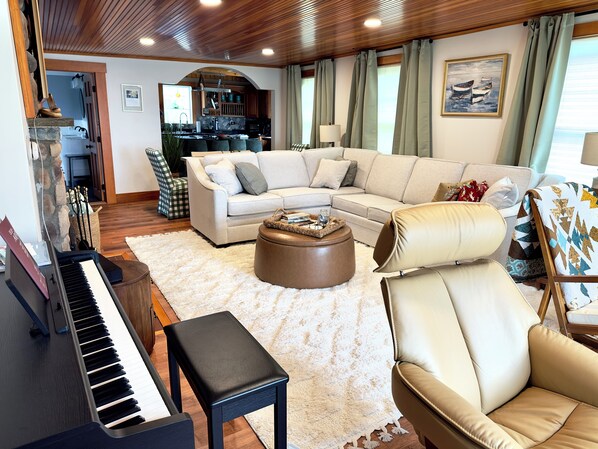 The modern kitchen has a gas cooktop, oven, microwave, and full-size fridge with filtered water/ice. The cozy living room is the perfect spot to watch the tide roll in through big picture windows. And for music lovers, the fully encased Yamaha digital piano is ready for spontaneous jam sessions, songwriting retreats, or peaceful practice time.