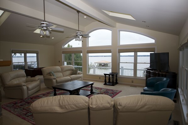 Mansión de 5300 pies cuadrados con comodidades de última generación y construcción de calidad. ¡5 enormes y espaciosas habitaciones, incluidas algunas con techos de más de 20 pies! Vistas al agua desde cada habitación de la casa. 5. 5 baños se aseguran de que todos tengan su privacidad. La cocina está completamente equipada con todo lo que necesita para preparar cualquier comida, ¡sin importar cuán gourmet o complejo sea! Gabinetes de madera hechos a mano a medida y electrodomésticos de acero inoxidable de alta calidad. Nuestra casa también cuenta con equipos de ejercicio, así como una sala de juegos para entretenerlo después de un divertido día en el agua.