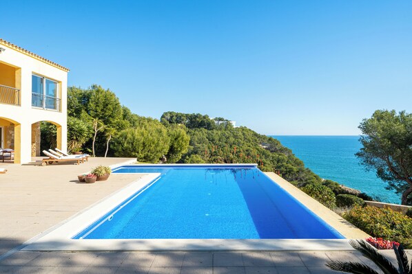 Villa 'The Beauty of Cala Tamarit' con vistas al mar, piscina, wifi y jardín