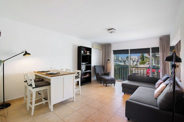 Apartamento 'Costa Cabanas 54' con piscina compartida, jardín compartido y aire acondicionado.