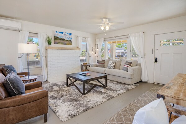 Step outside and experience a true Main Street, wine tasting to dining and boutique shopping, Saturday Farmer's Market, everything is just a stone's throw away. After a day of exploration, unwind in the comfort of the living space adorned with new appliances, furnishings, and a sleeper sofa, offering ample sleeping arrangements for up to six guests.