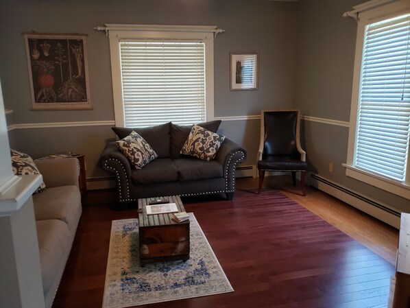 The property is as advertised. We were very comfortable. We attended a wedding at Journeyman distillery and it was less than a mile walk from the house. Our host was great. She even provided a welcome bottle of wine in the fridge. Because we had a family member with Alzheimer’s who is 84, I would suggest a handrail on the landing and the upper stairs. She could not be downstairs as we needed her own bedroom, but to be close to us. Husband mentioned shower caddy’s in bathrooms would be nice.
