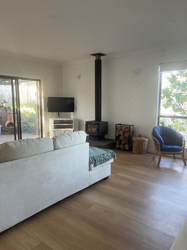 Comfortable and well appointed, the house includes all the ammenities required for a convenient and restful stay; smart tv, fully equipped kitchen, aircon, barbecue, outdoor shower, double carport, wood fireplace & washing machine.