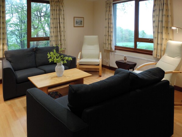 Cuarto de baño con ducha en el baño y aseo.. Calefacción central de gasoil, electricidad, ropa de cama y toallas incluidas. Combustible inicial para fuego abierto incluido. 1 acre de terreno áspero natural con área de patio. Estacionamiento privado. No Fumar. Tenga en cuenta: La propiedad tiene un suministro de agua natural desde un pozo. Esta encantadora casa de vacaciones (con el apartamento del propietario que rara vez se usa arriba) es brillante y atractiva, escondida entre los árboles en un lugar natural virgen y aislado, a 3 millas de Turriff. Un entorno tranquilo y relajante, bien situado para visitar las diversas tiendas, campo de golf, piscina y centro de ocio de la ciudad. Las propiedades del National Trust, Duff House y las galerías están a 16 km. Deportes campestres disponibles a nivel local.