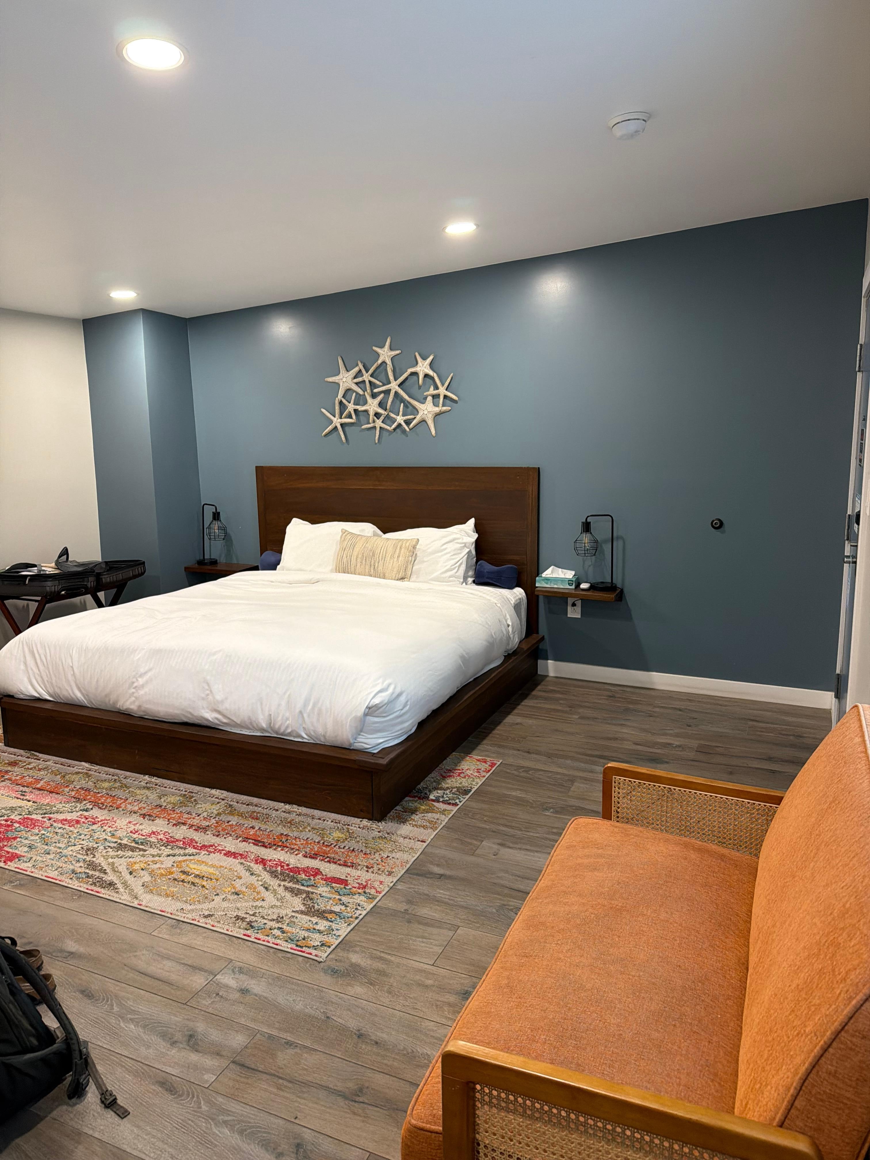 Extremely clean and beautifully renovated room, parking was convenient. Staff were great, didn’t have any issues that required staff. Only downside was no microwave which should not be a problem for most people. Stayed 1 night before going to Channel Islands National Park through Ventura Harbor and this stay was close, cheap, convenient, and checkout was very fast