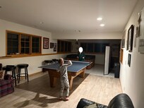 This home had lots of beds, large areas to sit and visit, and a great kitchen and eating areas. It was clean, the beds were comfortable, and communication with our host was friendly and easy.Some of the pictures on the listing may be a bit outdated - I noticed that the ping pong table (which is on top of the pool table) and foosball table are now on tile, not carpet. The hot tub was fun for us all, and there were plenty of towels.It was too cold to go outside, but it had a spacious back yard, porch and grill. There was a lot of junky-looking stuff off to the side of the yard which might have been an issue if my kids wanted to explore outside, but it didn't affect us staying inside except for it being an eyesore out of the beautiful sunroom sitting room.We used the kitchen and found it well-provided for with basics of salt/pepper, oil, pots/pans/serving utensils. It had a stove and oven top that were easy to use. Appliances (dishwasher, washer and dryer) were all easy to use with well-stocked soap and detergents.It was spendy, but definitely comparable to what we would have to spend on a hotel room for our family size, and this was much more spacious and pleasant than a hotel.The listing advertises a pool/communal pool, which we were not expecting to use anyway since we visited in March, but there was no pool. Maybe it was referring to the hot tub.The home is a duplex. The other side of the duplex appeared uninhabited while we were there.We would stay again.