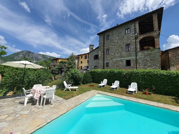 Experience authentic Tuscany in this beautifully restored 16th-century stone villa with private pool and sweeping views over the Garfagnana valley. Villa Massa is located in the peaceful village of Massa Sassorosso, 850 m above sea level, between Lucca and the Versilia coast.