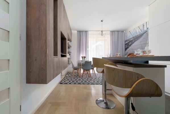 Todas las habitaciones en Zawiszy 14 Warsaw | Cozy Apartment | Balcony & Parking disponen de comodidades tales como oficinas, mesas de comedor y conexión a Internet.