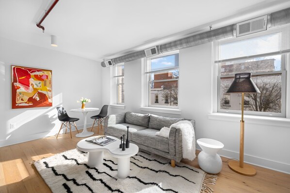 Galería de imágenes de A rare find: sun-drenched 2BR corner suite in an 1860 furniture factory turned Art Deco landmark. Bold art, King Street views, boutique-hotel design. Chef's kitchen, in-unit laundry. Steps to Old Town's waterfront. Dogs welcome.