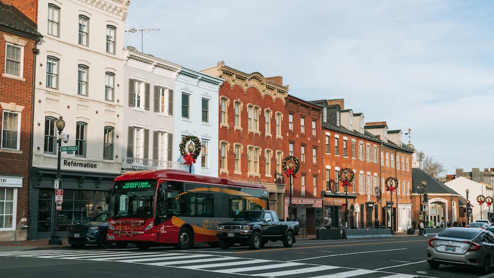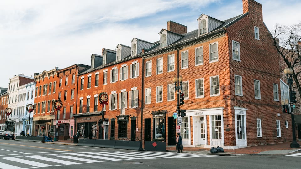 Descubre algunos de los edificios más antiguos de Washington, exclusivas tiendas y una vibrante vida nocturna en este elegante barrio a orillas del río.