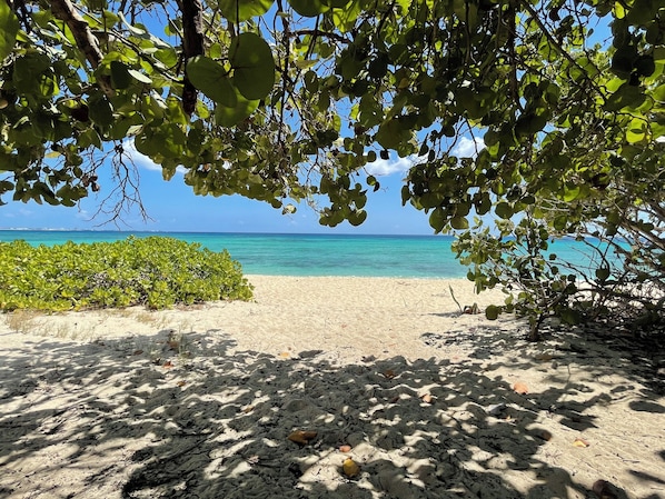 We enjoyed having direct access to a semi-private beach. The public beach is very close which was very interesting. Locals would come out to grill, blare music, play dominos, play beach games. Which is all great but mixed in with the lovals having a good time are some local beggers The area is very quiet & relaxing. This unit is on a bottom floor which is important to know if a family with young children are above you. I'm not sure if the kids were preparing to become WWE wrestlers but if not they had a GREAT start. Found amazing restuarants along seven mile beach. We explored the island & found a couple snorkle options but once in the water it was a little too rough to enjoy fully. Went on snorkel/ stingray city/ starfish cove with I think Martin's. Charters. We had a small group & the capitain went out of his way to make it a great relaxing time. One note that I wish I had realized when I did my research was that on Sundays the local are OFF. The groceries are closed & families are spending their time together. AMAZING! Restaurants are open so no issues there. I bring this up because we came in on Saturday. Soent some time relaxing. Decided to go to grocery at 7 pm because they closed at 9. BIG BIG BIG MISTAKE! All the locals were there getting their needs for the next week for work because they didnt get off of work until 6 & the sfore is closed Sunday & they return to work Monday. It was very crowded. Over all- very good trip & house enjoyable