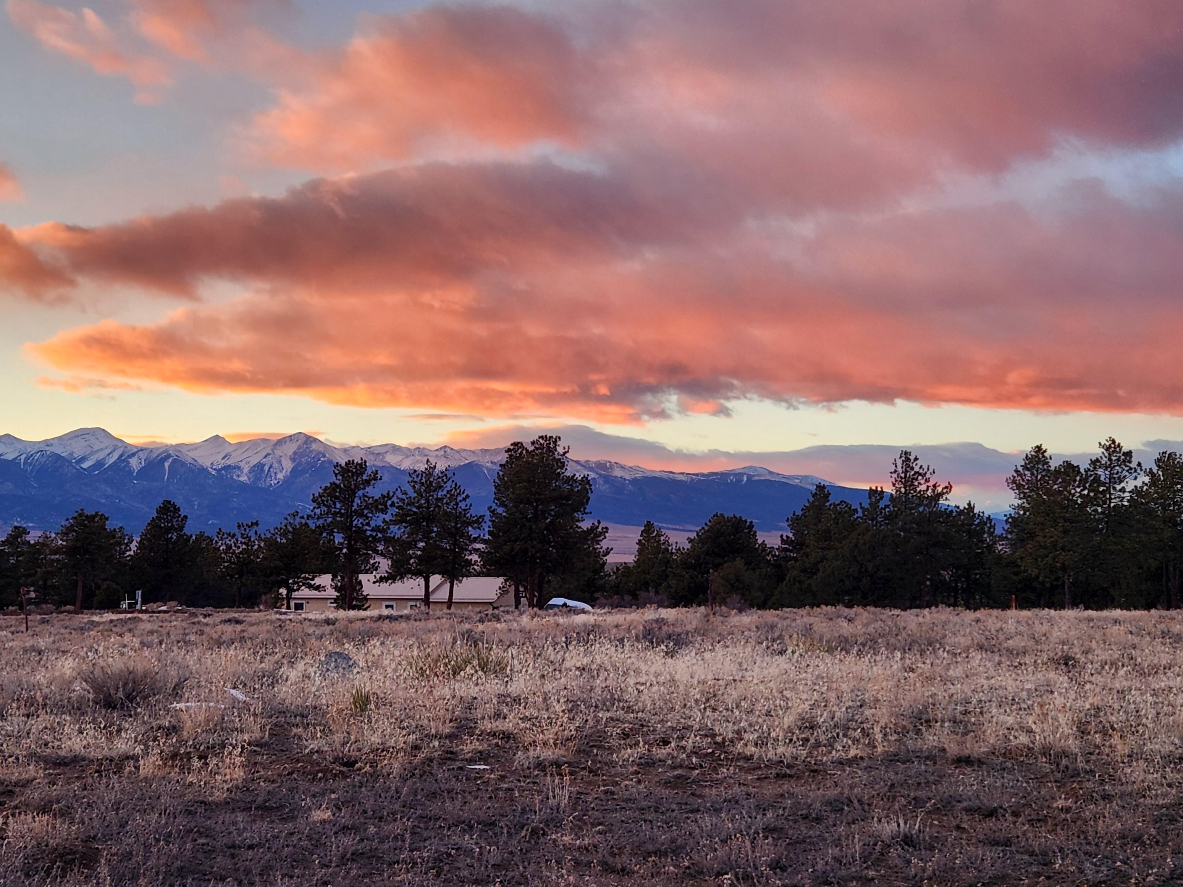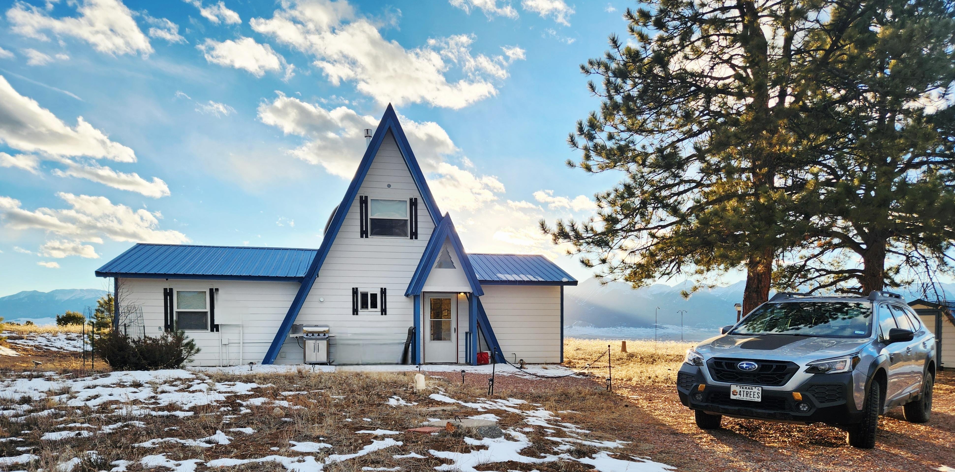El Blue Elk Mountain Home tiene vistas al valle de la montaña húmeda y a la cordillera Sangre De Cristo, a una altura de 8500 pies.