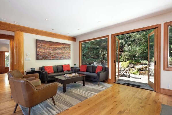 Snow-dusted peaks frame your days while quiet evenings invite you to slow down by the fire or slip into the warmth of the hot tub under winter skies. From the moment you arrive, the setting in Blueberry Hill feels calm and tucked away, yet close enough to Whistler’s energy when you want it. Large windows draw the mountains into every level of the home, creating a natural connection to the landscape around you.