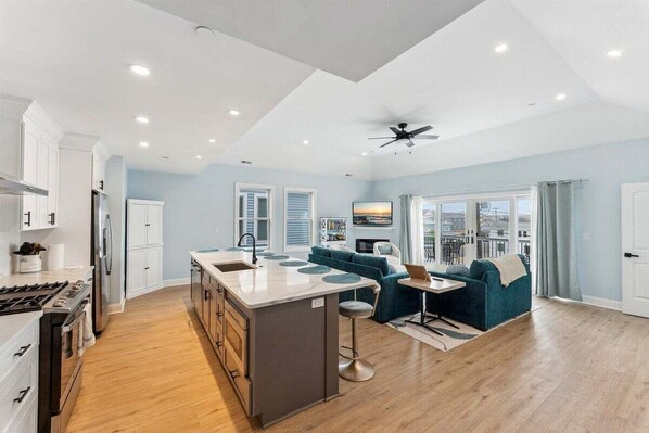 Experience ultimate coastal living steps from the beach in Wildwood. This stunning, brand-new 3-bedroom, 2-bath condo offers captivating ocean views and accommodates up to 8 guests.